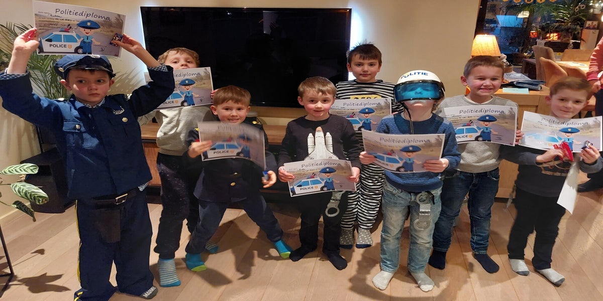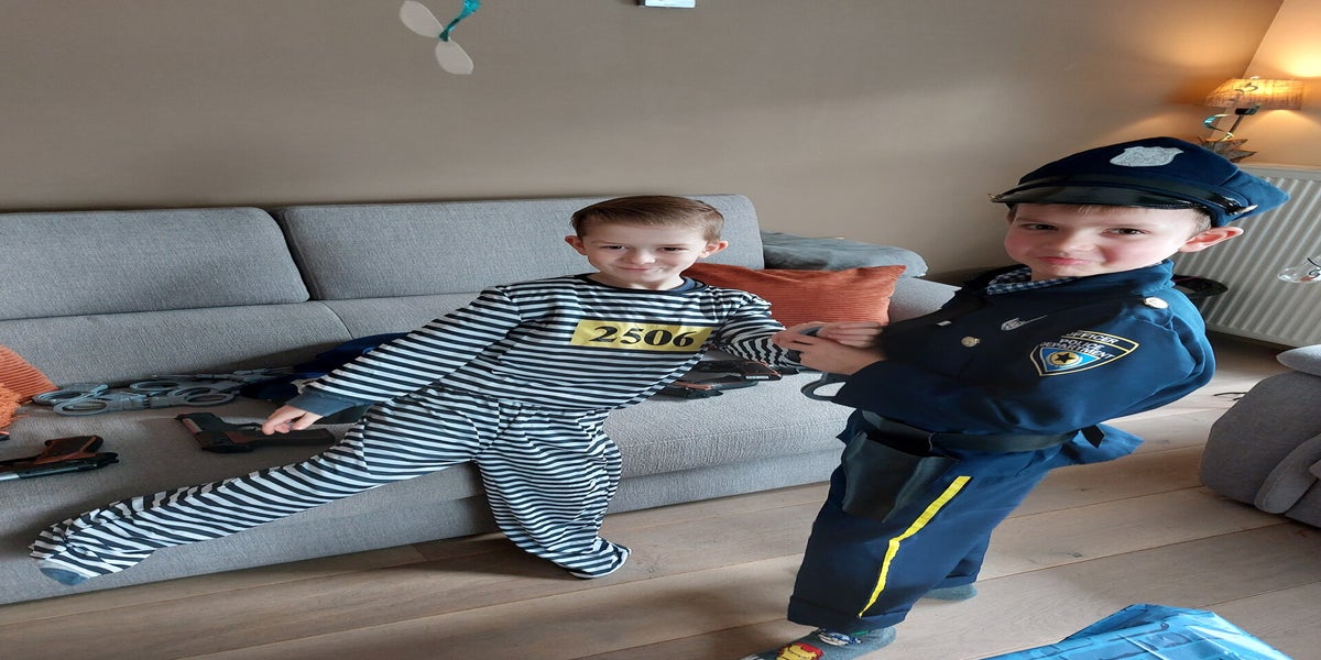 - politiepetten, dievenkostuum, pistolen en handboeien voor de vriendjes